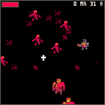 I discovered this game on June 10, 2019 on an MS Dos floppy disk dating from 1996 taped behind a Ouija board bought in a flea market in France. Strange inscriptions were engraved on the diskette itself in a totally unknown alphabet. I played it for the first time on my uncle's old computer. Everything seemed normal during the first part: a shooter like Smash TV but much darker where the goal is to survive as long as possible against waves of creatures. Then as i play gaming sessions, some disturbing details that I had never met appeared in the game ... Until I see ... I do not know if it's human .. I saw her reflection on the screen, she was behind me ... she wants ... that I look in my bowels and follow her in her dimension. I decompiled the game and then transcribed the code on modern support and now you can see what I saw, you can see and follow it, glory to it.
